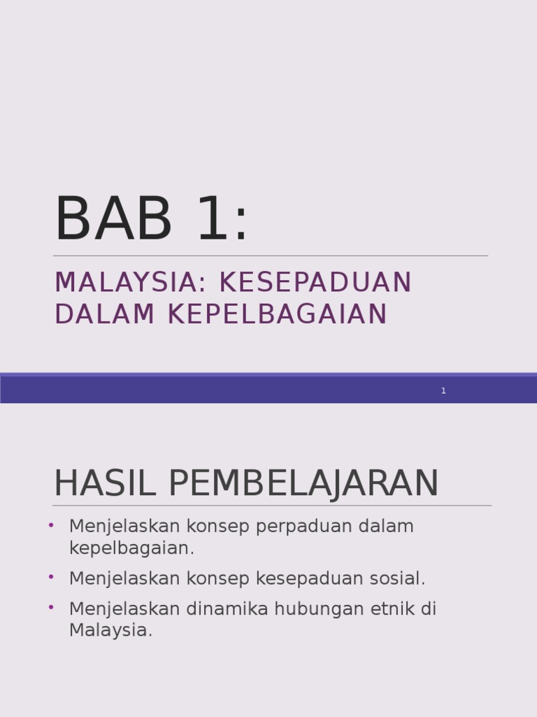 Elemen penting yang membawa kepada kesepaduan sosial dalam konteks kepelbagaian. Proses ini ditunjangi oleh unsur unsur akomodasi. Justeru negara negara maju seperti amerika syarikat kanada. This is a text of a distinguished professor lecture that argues that malaysia dreams of a unity in diversity but it actually exists on cohesion in diversity which means as a society malaysia is characterized by its intense.