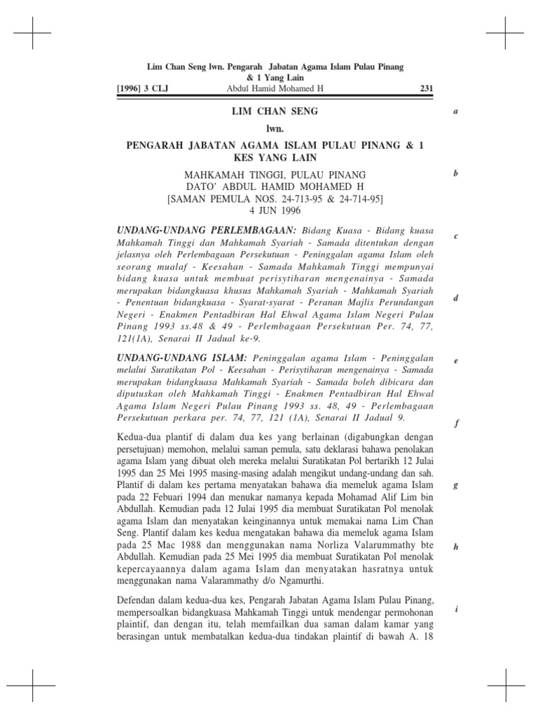 Lim Chan Seng V Pengarah Jabatan Agama Islam Pulau Pinang 1 Yang Lain