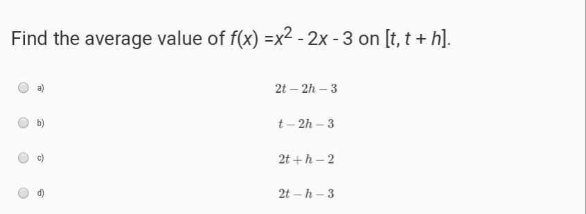 Solved Find The Average Value Of F X X2 2x 3 On T T Chegg Com