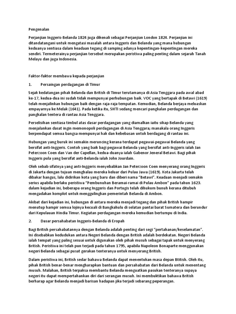 Faktor2 Perjanjian Inggeris Belanda Pdf Document